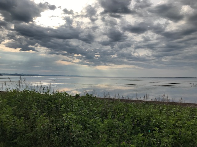 水平線には、サロマ湖と海を区切っている、半島が両側から迫っているのが見えます。