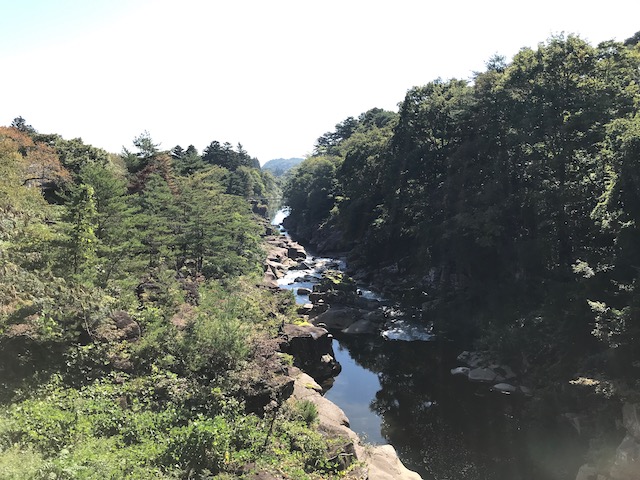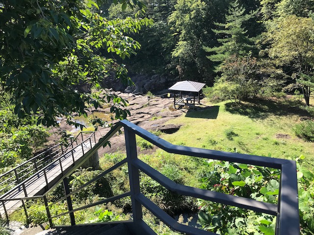 おり、渓谷まで降りられる木製階段を降りて行きます。